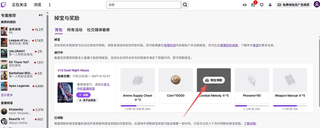 11. 待倒计时结束后,点击“现在领取”按钮以获取奖励