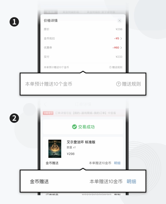 订单返金币