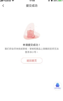 7、完成验证后,会显示卖号审核提交成功,具体如下图所示。