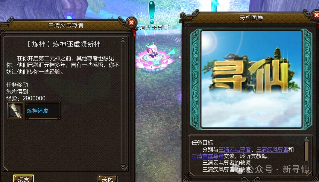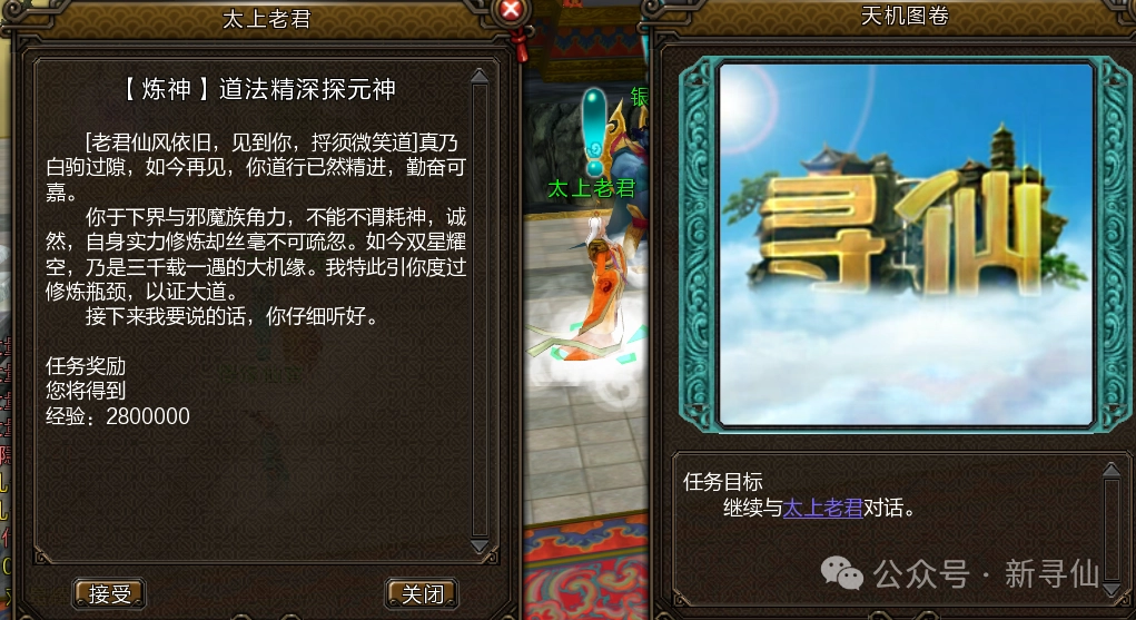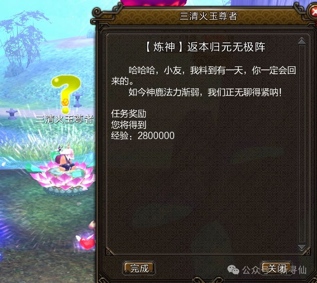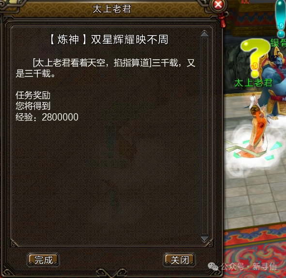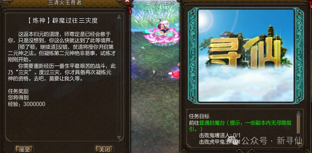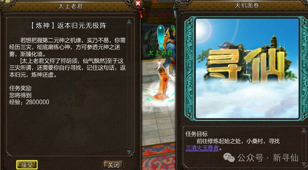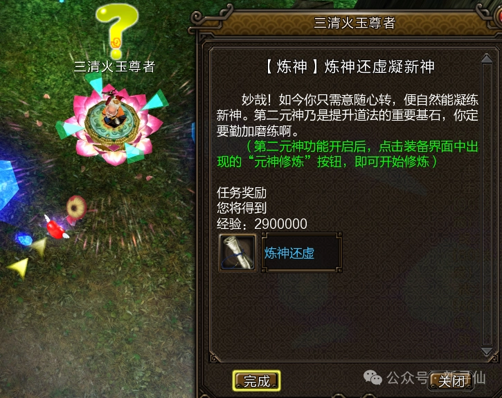 按任务指引前往万仙台寻找太上老君,完成封魔台战斗及小桑村混元无极阵任务后即可开启第二元神。