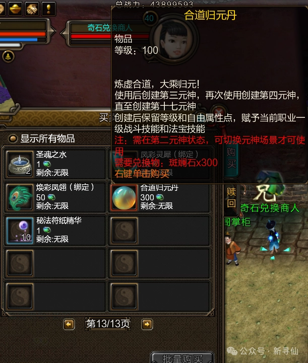 天目力士可在创建第二元神时直接选择开启,无需通过任务获取,也无需在仙友会奇石兑换商人处用斑澜石兑换合道归元丹(该丹药也可在交易区购买)来开启。