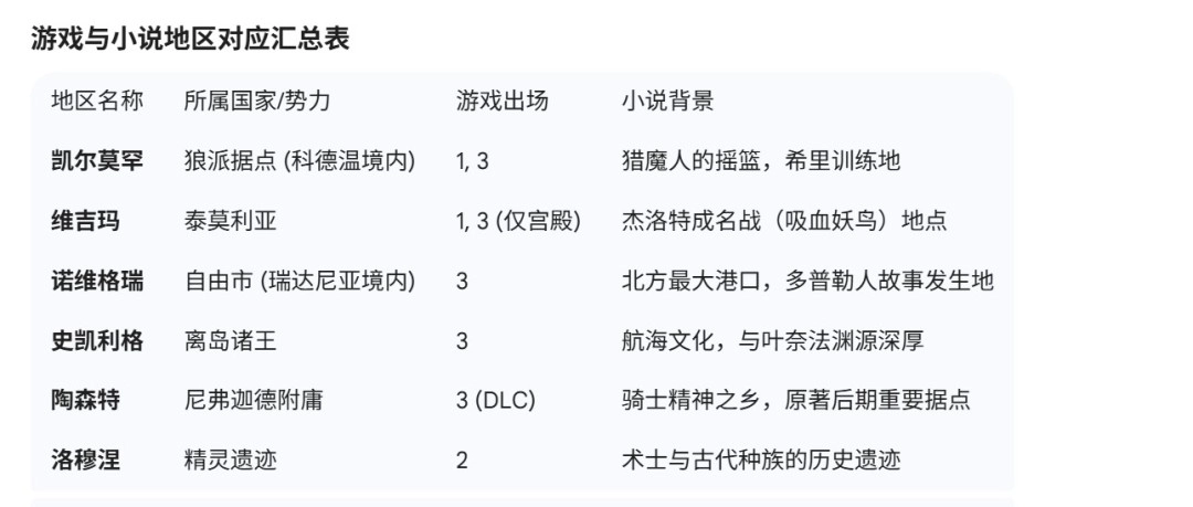 游戏在忠实还原小说地理与文化设定的前提下,增添了诸如白果园、弗洛茨姆这类原创地点,同时对威伦、洛克·穆因等次要地区进行了内容扩展,进一步强化了《巫师》世界的沉浸体验。