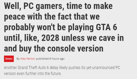 不过,R星应该也明白:只要主机版和PC版的发售时间间隔足够久,不少玩家都会选择“二次购买”。另外,还要先推出新