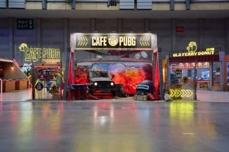 另外,休息区的“CAFÉ PUBG”和热门甜品品牌Old Ferry Donut联手打造了限定菜单,同时融入《BATTLEGROUNDS》的世界观设计了互动小游戏与体验活动,吸引了大批粉丝前来参与。完成打卡任务的玩家,还可领取到《BATTLEGROUNDS》主题的雨伞、抱枕、颈枕、玻璃杯等多样周边礼品。