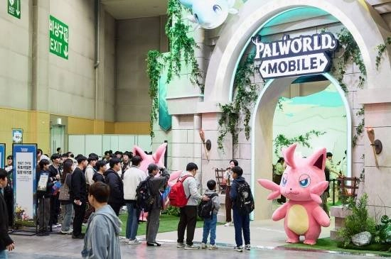 今年,KRAFTON展台以日本游戏开发商Pocketpair旗下《幻兽帕鲁》IP正版授权的新作《幻兽帕鲁手游》为核心,搭建了“帕鲁狩猎区”与“帕鲁捕捉区”两大沉浸式体验区域。玩家在此既能深度沉浸于游戏世界观,还可收集电子印章;参与“Alpha测试申请活动”更能获取额外印章,用于兑换《幻兽帕鲁手游》主题手机支架、钥匙扣等限量周边。展台内同步设置了人气帕鲁主题拍照区,方便玩家打卡留念。展会开幕后,该游戏体验区便吸引了大量观众,排队人流络绎不绝,最长等待时长达到150分钟,热度十分高涨。体验过的观众纷纷给出好评,如“在移动端也能完整感受到原作的乐趣”“操作直观、上手简单、战斗节奏轻快”“技能战斗系统充满趣味与沉浸感”等。