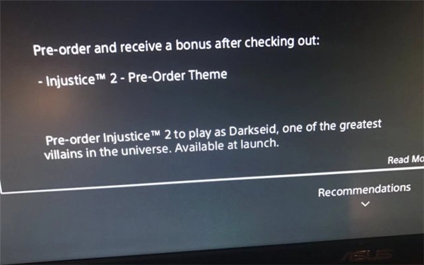 该消息来源于PlayStation商店的列表信息。作为预购福利推出的角色为黑暗君主达克赛德Darkseid。