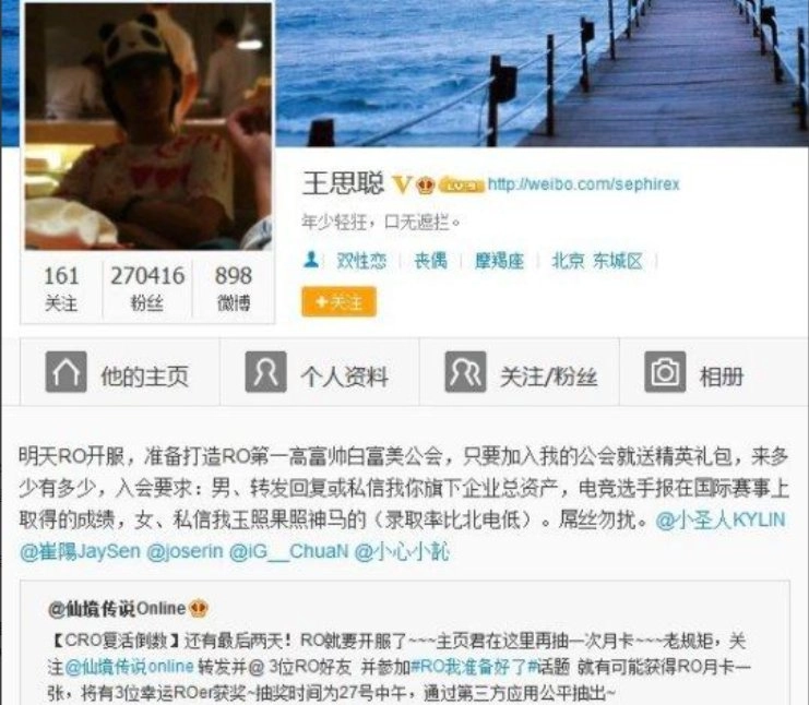 王思聪更以玩家身份造势,宣称组建 “RO 第一高富帅白富美公会”,却因开服服务器崩溃,在微博放言 “3 月 1 日 14 点前解决问题就吃翔三斤”。
