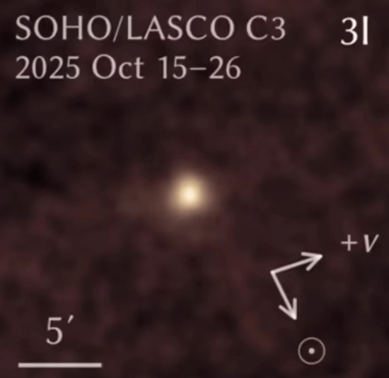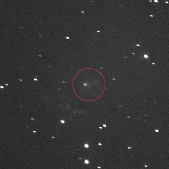 克沙特里亚解读道:“图中可见 3I/ATLAS 呈现为一团模糊的白色球状结构,这团‘球’实为彗发(coma),即彗星在向太阳运行途中不断释放的尘埃与冰粒云团。”