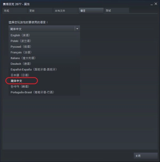 在属性窗口里找到语言选项卡并点击,接着在“选择您玩游戏时要使用的语言”这个下拉菜单中挑选简体中文。