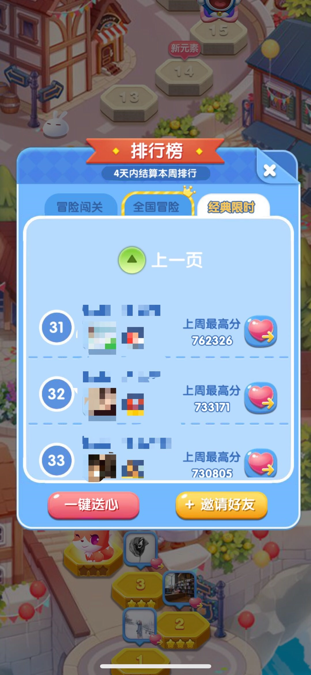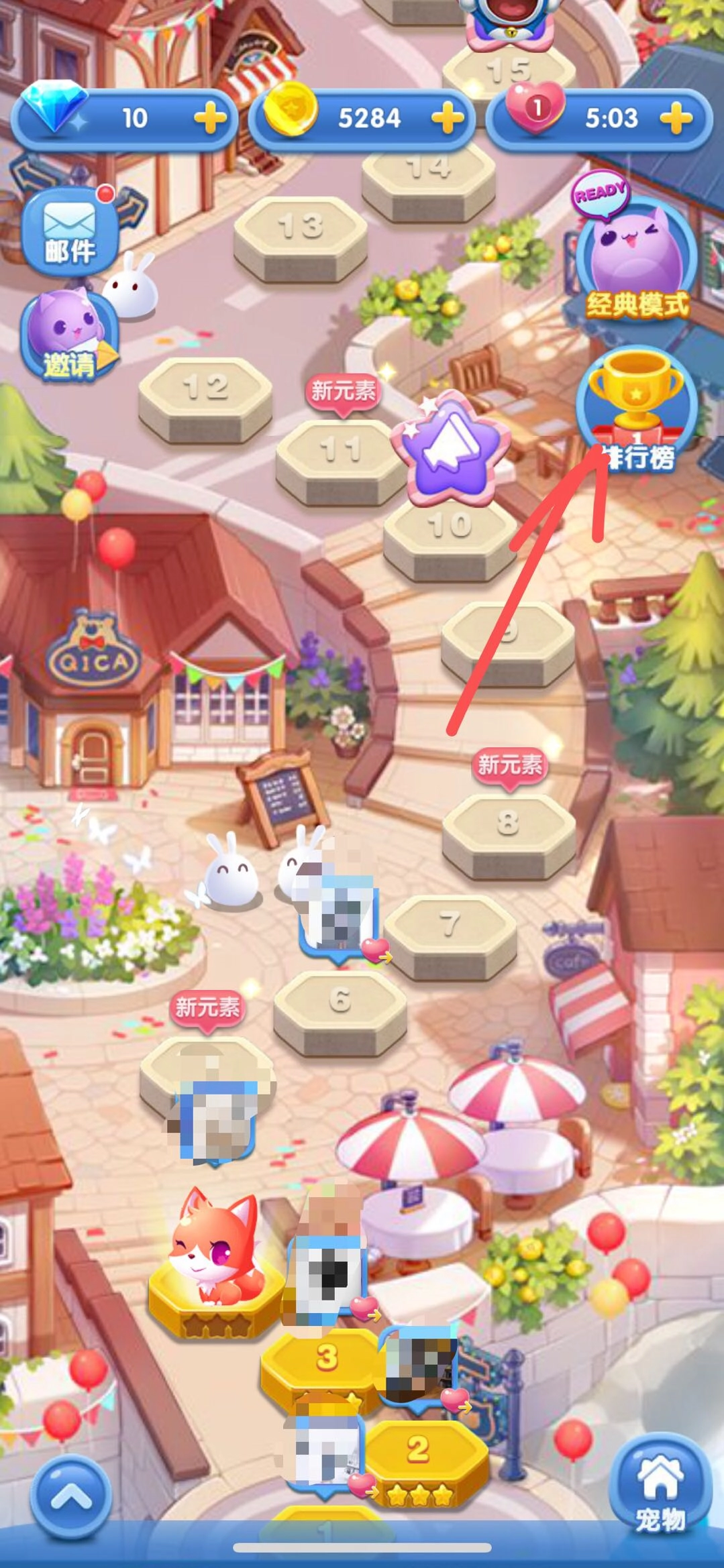 玩家既能独自挑战关卡,也能查看共同游玩的好友排名并与之PK。点击右侧的排行榜,就能看到好友的闯关数量。