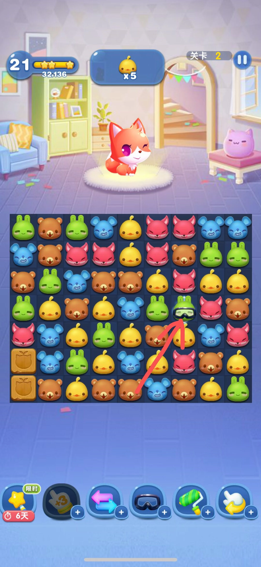 在消除操作时,不能随意进行配对,务必谨慎对待,尤其要留意那些能触发特效的关键步数。当五个相同的动物连成一排时,会生成一个暴风幽灵,将这个幽灵与任意头像交换位置,就能清除游戏界面上所有相同类型的图标。