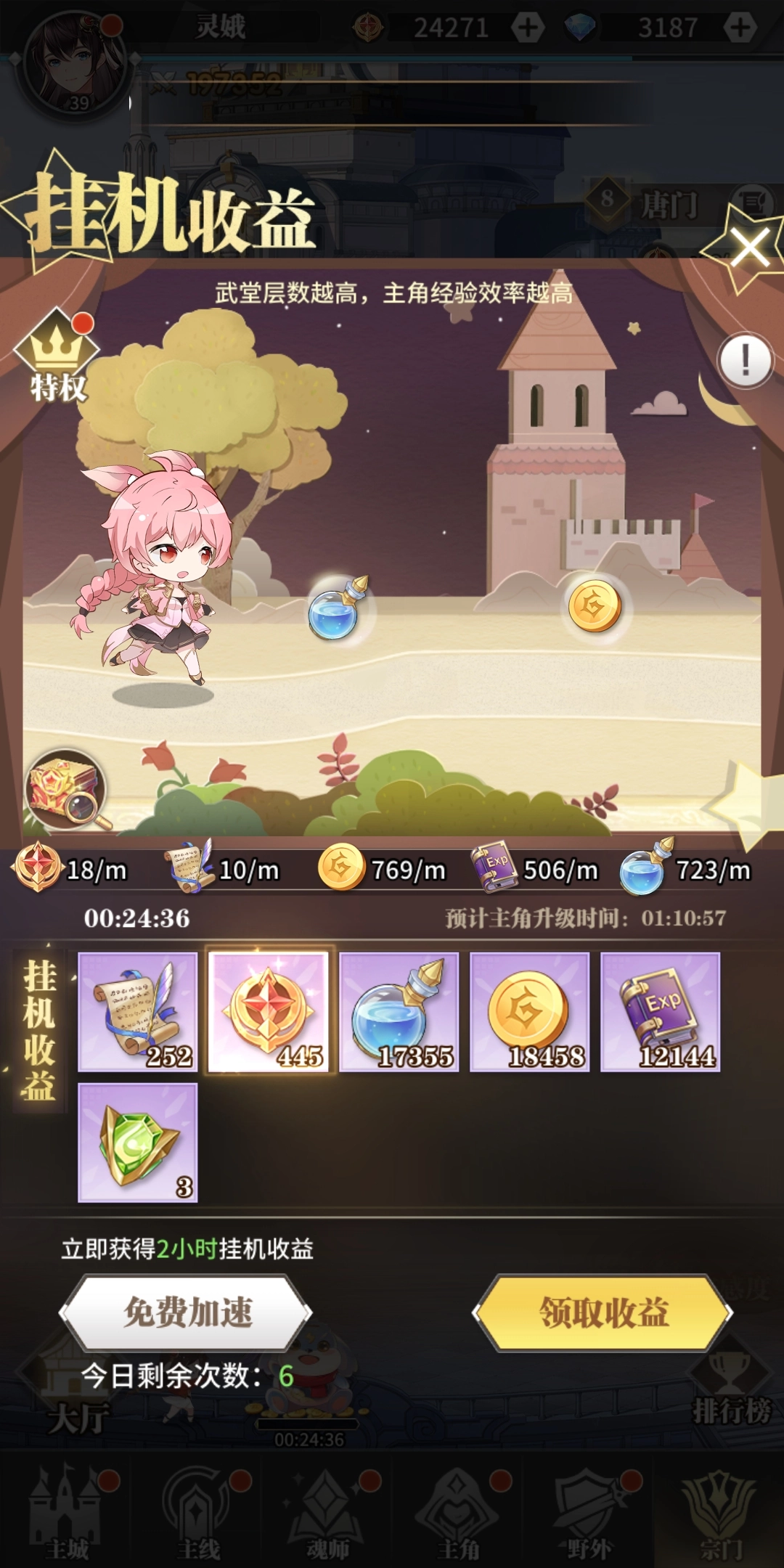 宗门挂机能够获取金币、经验等五种资源,这其中金币的挂机收益和匠堂有着直接关联,要是任命匠堂的专属堂主独孤博,就能显著提升金币的获取速度。不过要知道,玩家每天有1次免费的宗门加速机会,在此之后进行挂机加速就需要消耗钻石了。