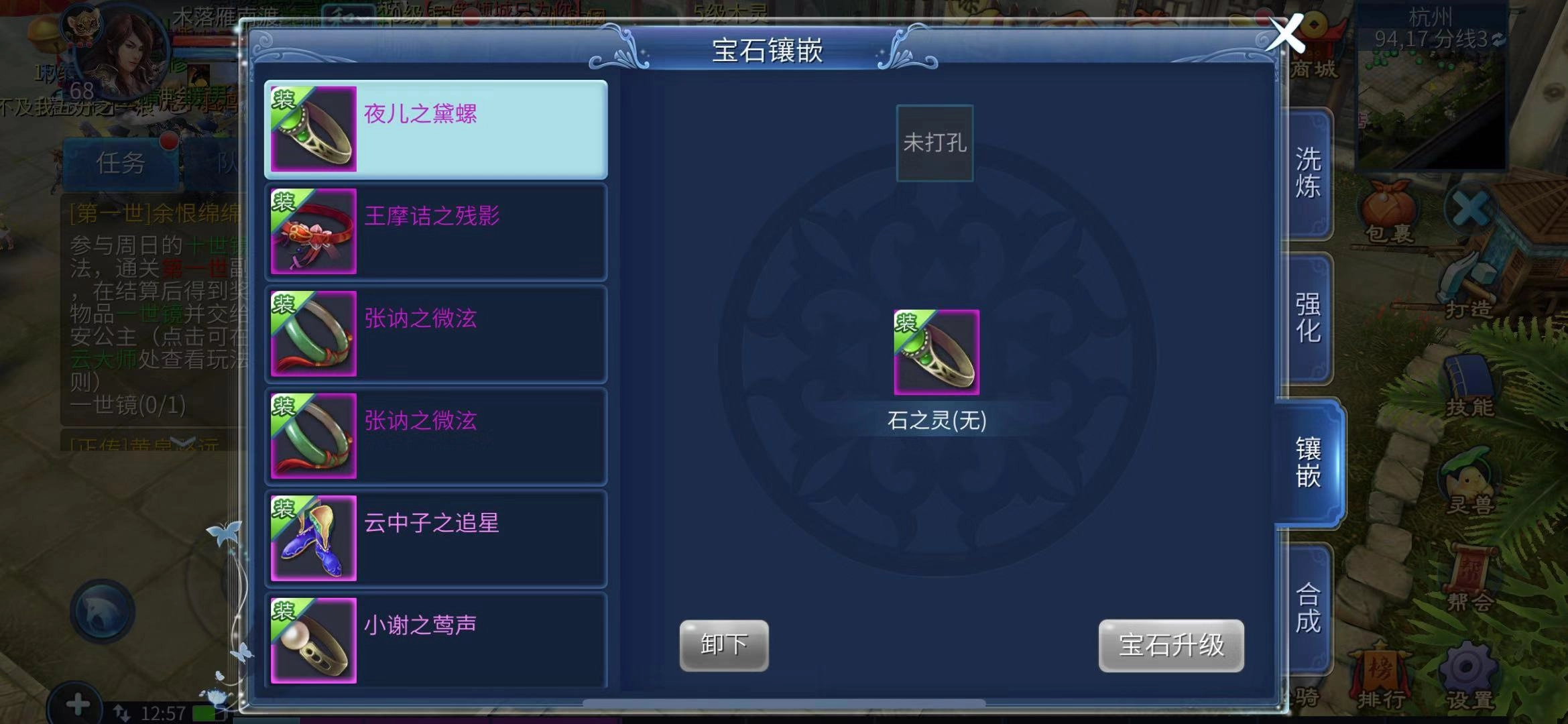 玩家除了通过洗炼提升装备幸运值外,还能借助镶嵌宝石的方式达成这一目的,且效率比持续洗炼更高。具体操作是:玩家可在易市以较高价格购入增加幸运值的宝石,再用金刚钻为装备打孔,将宝石镶嵌进去后,装备的幸运值就能得到提升。