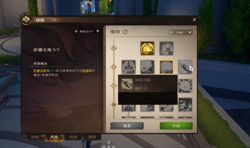 3技能折磨试炼:向目标灌注圣光之力,瞬间造成相当于自身攻击力106%附加123点的魔法伤害,同时让目标在后续6秒内持续遭受圣光侵蚀,每秒产生自身攻击力27%附加86点的魔法伤害。该技能法力消耗70点,冷却时间为15秒。天赋推荐:折磨之难——折磨试炼触发时,有20%的概率让下一次苦难技能额外叠加1枚信仰印记。