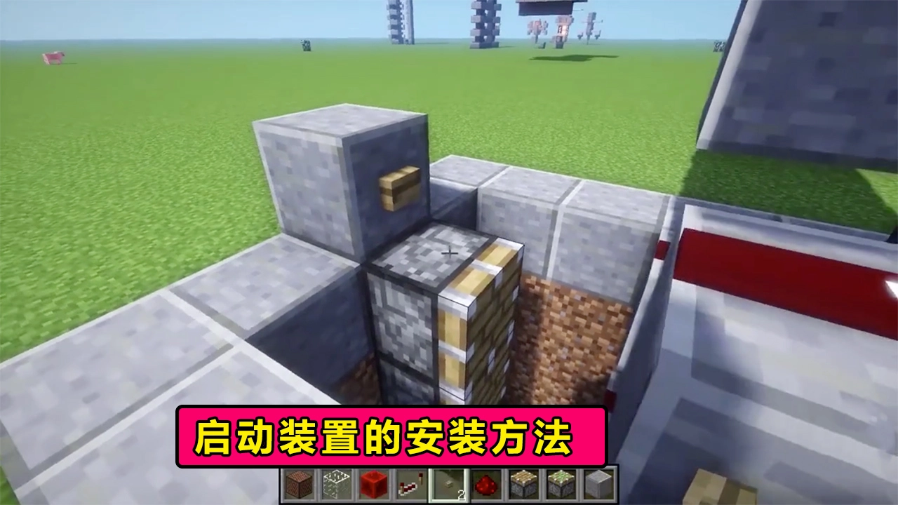 在这个3×5×3的坑中放置2个活塞,接着摆放2个方块,之后再安装2个按钮。这样一来,这个黑科技就制作完成了。它能够帮助玩家顺利到达顶端,解决了之前存在的一个Bug。为了美观,可以把周围的空隙填补起来。