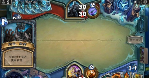下面是巫妖王第一回合先手使用的法术,大家看看牧师的情况,完全没办法应对。牧师看到这种局面恐怕要直接认输了!可以说根本没有反制的手段,除非法师能拿到暗金教侍从加反制的天胡开局,但这种情况的实际价值也不算大,毕竟boss本身没有直伤法术(后半段技能除外),场面才是关键所在。