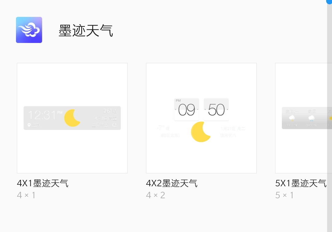 在界面里向下滑动,找到墨迹天气的插件后长按它。