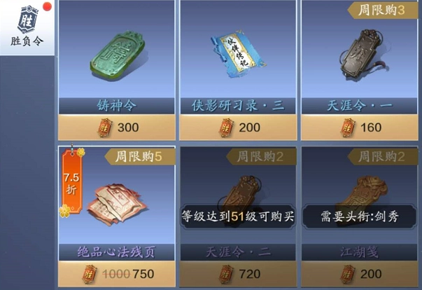 第3种胜负令的获取途径是参与论剑玩法,无论对战结果是胜是负,玩家都能得到相应数量的胜负令作为奖励。当玩家获得这些胜负令后,就可以在商城中利用天魁币来兑换自己所需的心法。