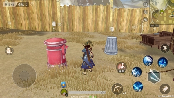 岛上分布着多种可采集的物品,当你靠近这些采集物时,界面会弹出相应的按钮给予提示。其中,稻草人、路牌和树木能够为你提供箭矢;而杂物堆则可以通过搜索获取装备或补给品。另外,采集植物后你将得到特殊的植物道具,使用后能带来短时间的属性加成效果。