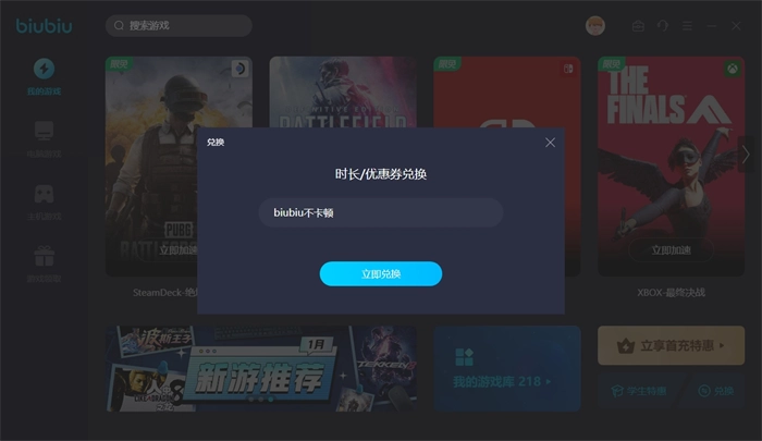 大家使用时,新用户可直接享受24小时加速福利;若已不是新用户,也能在兑换界面输入口令“biubiu不卡顿”领取3天加速时长,该福利新老用户均可领取,且时长可叠加,新用户届时能获得96小时加速机会。