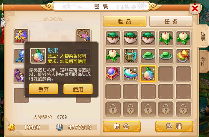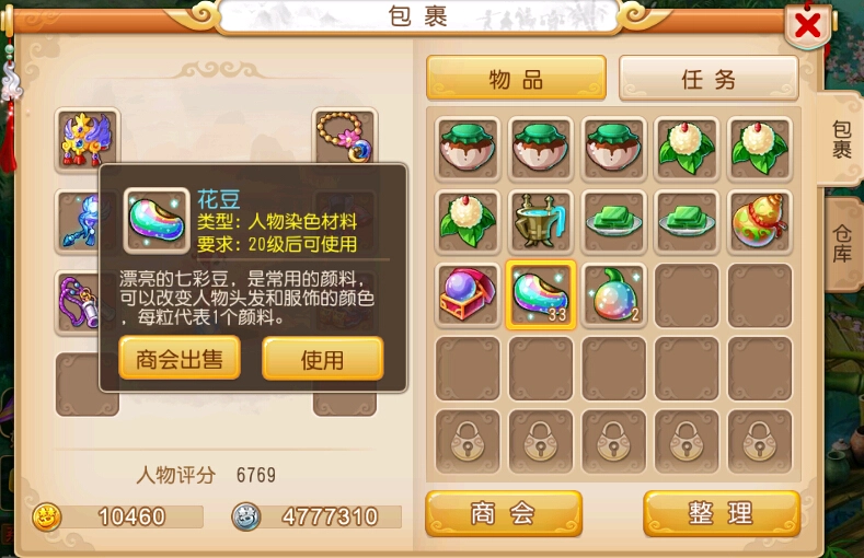 花豆是用于角色染色的道具,当角色等级达到20级时即可使用。作为常见的染色颜料,它能够改变角色衣服与头发的颜色,每粒花豆可对应染一个颜色。玩家可前往长安城中找到配色师NPC使用花豆,并且能自主挑选心仪的染色方案。