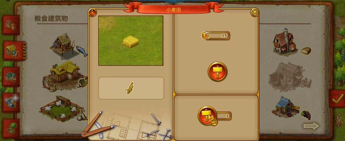 后期的居民普遍偏好面包这类小麦制成的食品,因此种植小麦的土地需要妥善规划保留。在发展前期,一个农场的规模就足够满足需求了。另外,如果采用分块的方式种植小麦,其成熟收获的速度会更快一些。不过由于土地资源有限,初期可以先进行分块种植,等后期土地不足时,再逐步将小块土地合并成连排的形式进行种植。