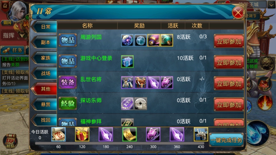 主要挑选能提供经验值的任务,优先选单人任务,点击参与后任务会自动寻路完成,我们只需跟着操作就行,通常一个日常任务几分钟就能搞定,所以升到50级还是挺快的。