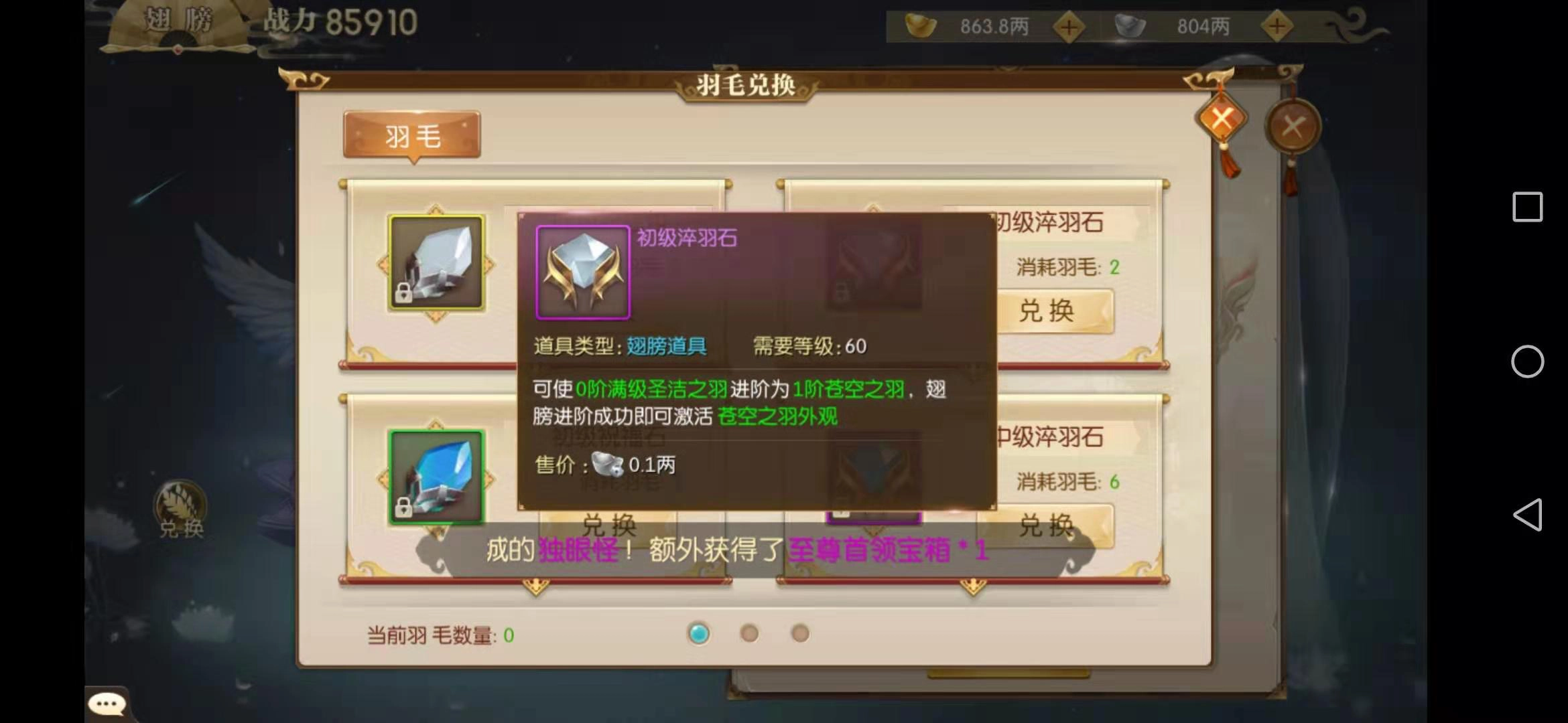 祝福石与淬羽石均需用羽毛兑换,等级越高的石头所需羽毛数量越多,而且低级石头也能合成升级为高级石头。因此大家要多攒羽毛,只有羽毛足够,才能让翅膀强化顺利开展。