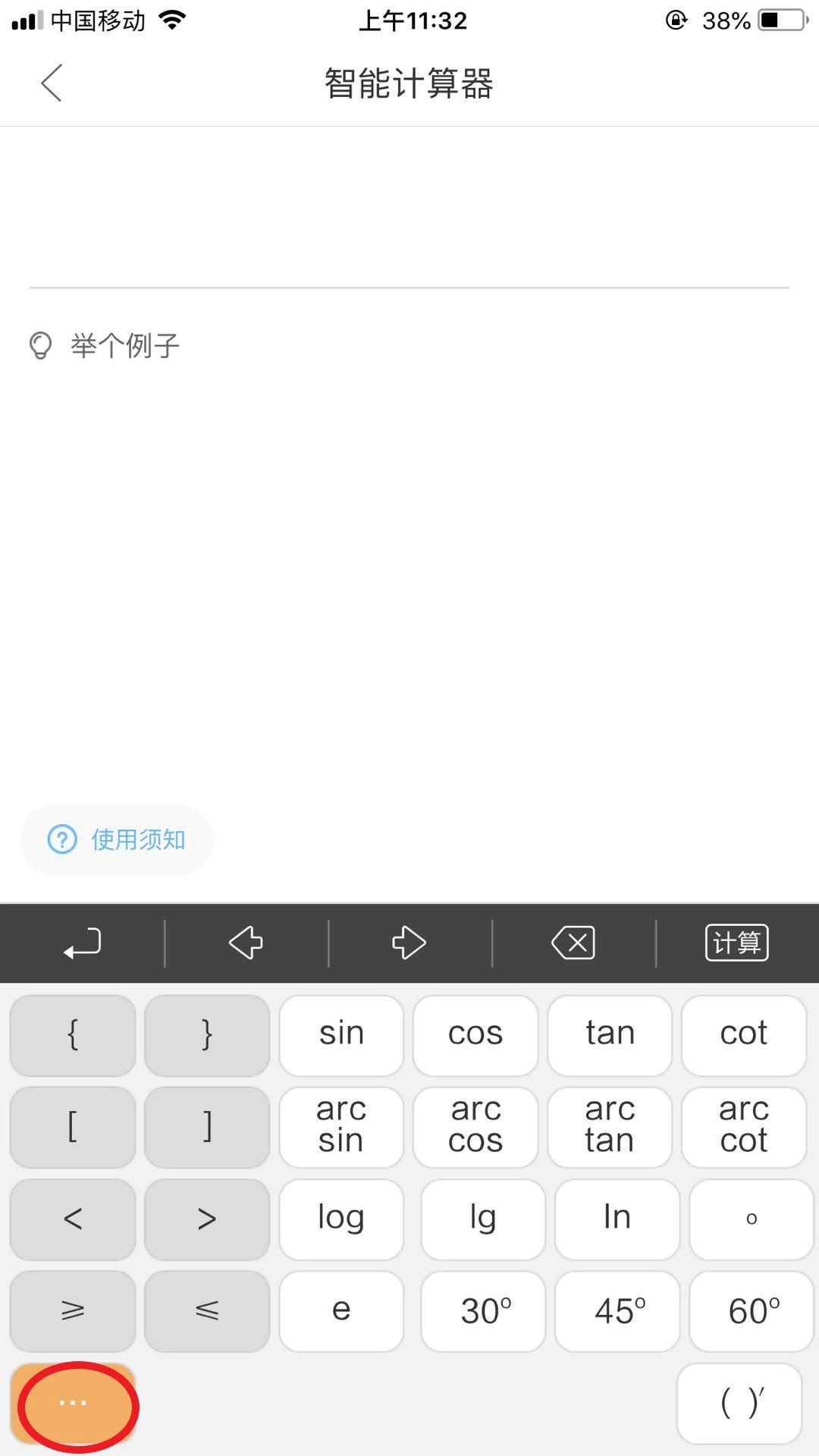 2.点击键盘上省略号对应的位置就能切换键盘,要是需要计算sin、log这类复杂运算,就得通过切换键盘来完成。