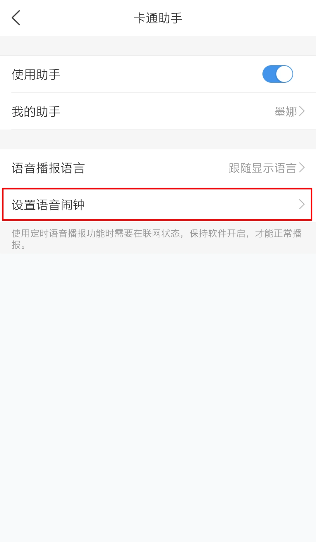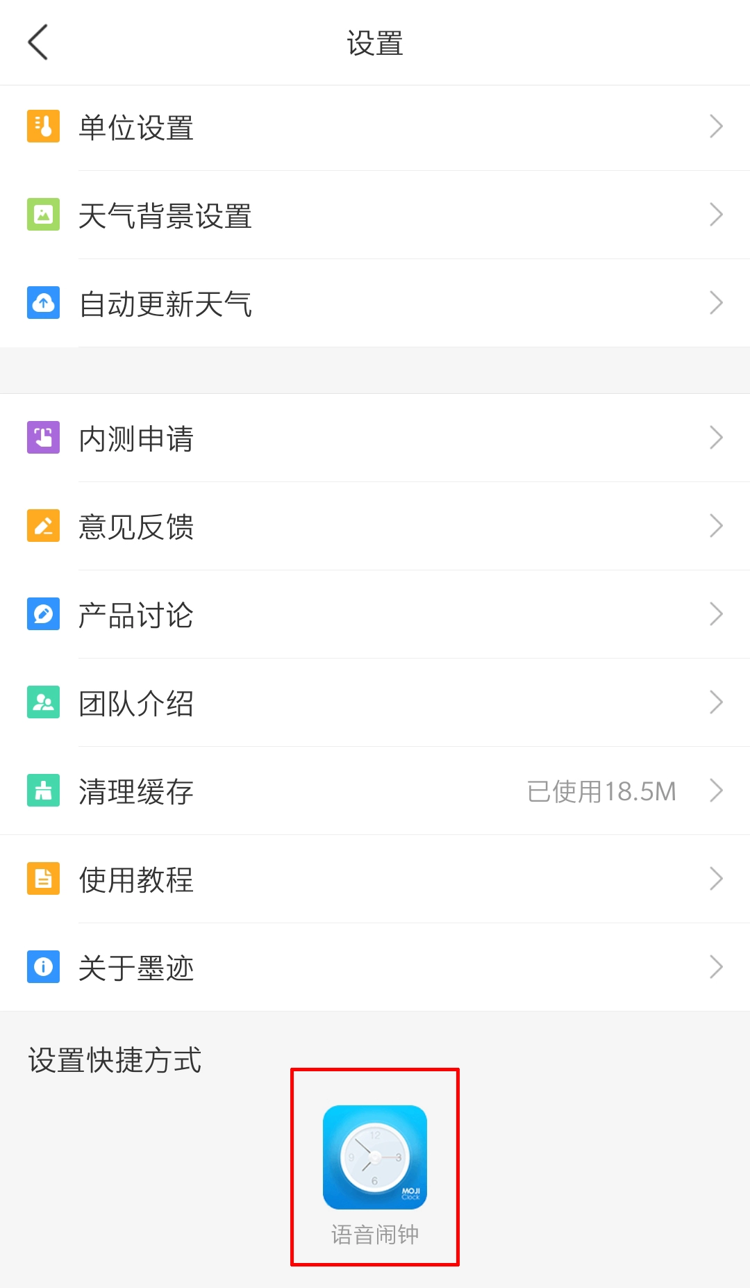 第二种方法是,在设置界面滑动到底部,点击快捷方式里的语音闹钟,同样能够进入设置界面。