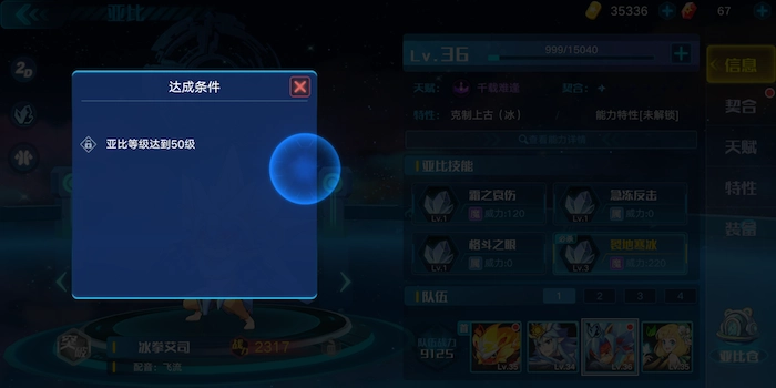 最后,冰拳艾司等级达到50级时能够进行突破,突破后会获得全属性加成,技能威力也会得到大幅提升。不过需要注意的是,亚比的等级上限不能超过玩家自身等级,因此玩家可以通过挑战怪物、完成主线与支线剧情等途径来加快升级进度,这样才能让冰拳艾司顺利突破~