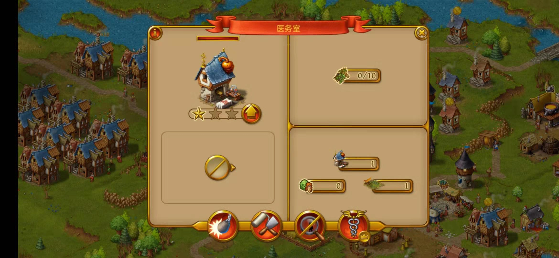 医务室可处理市民日常的健康问题。一旦遭遇瘟疫,就需要足够多的医务室来收治患者。若医务室数量不足,也无需担忧——在医务室界面里有个功能选项,只需消耗相应声望值,就能一次性治愈所有患病市民,而所需声望的多少则由市民总人数决定。