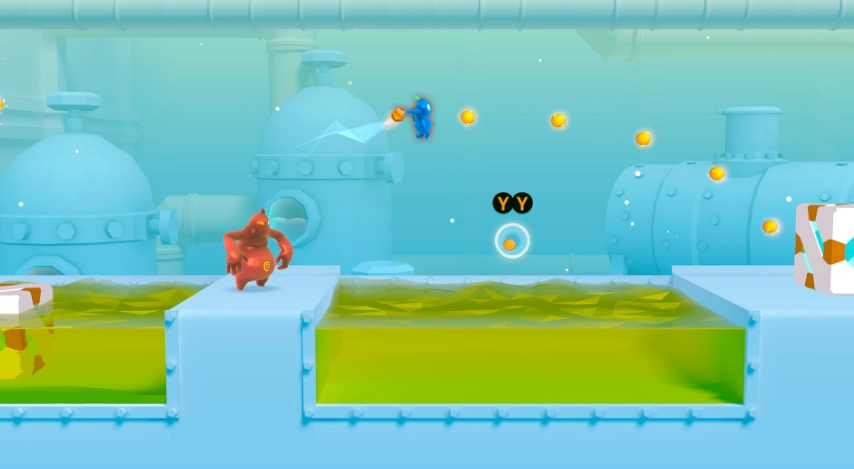 游戏里有两个角色,一个是胖子,一个是瘦子,光看外形就特别搞笑。这虽然是款双人合作闯关游戏,但实际上满是互相坑害的操作。游戏关卡数量不少,而且没有生命限制;闯关过程中,果冻人能自由改变身形大小——变小后跳得更高,适合攀爬场景;变大后力量更强,适合搬运物品或是扔队友。