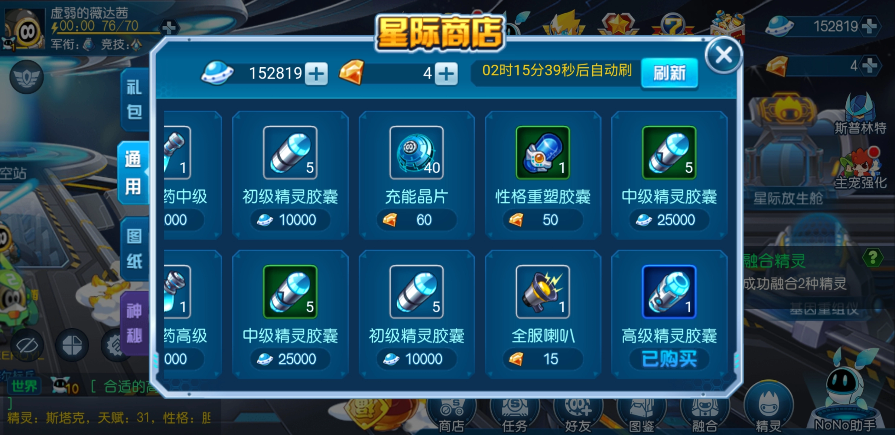 玩家要是捕捉胶囊数量不足,可前往星际商店的通用界面购买。每日限购一个高级胶囊、十个中级胶囊与十个初级胶囊,不过不太建议购买初级胶囊,毕竟它的捕捉效果欠佳。