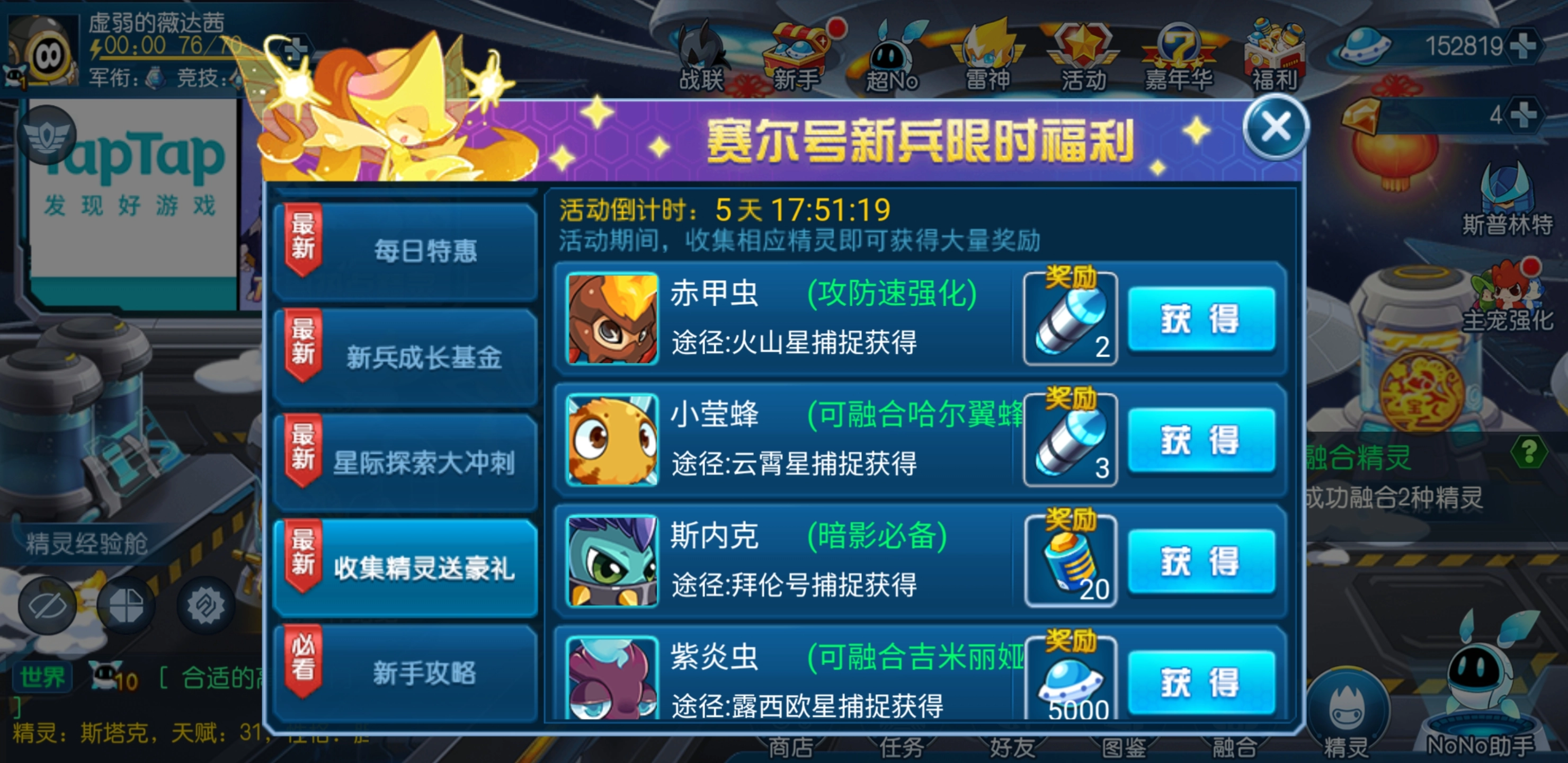 新手玩家捕捉闪光皮皮会获得奖励,尽管奖励只是赛尔豆,但也挺不错的;大家还可以尝试捕捉其他精灵,以此获取更多奖励。
