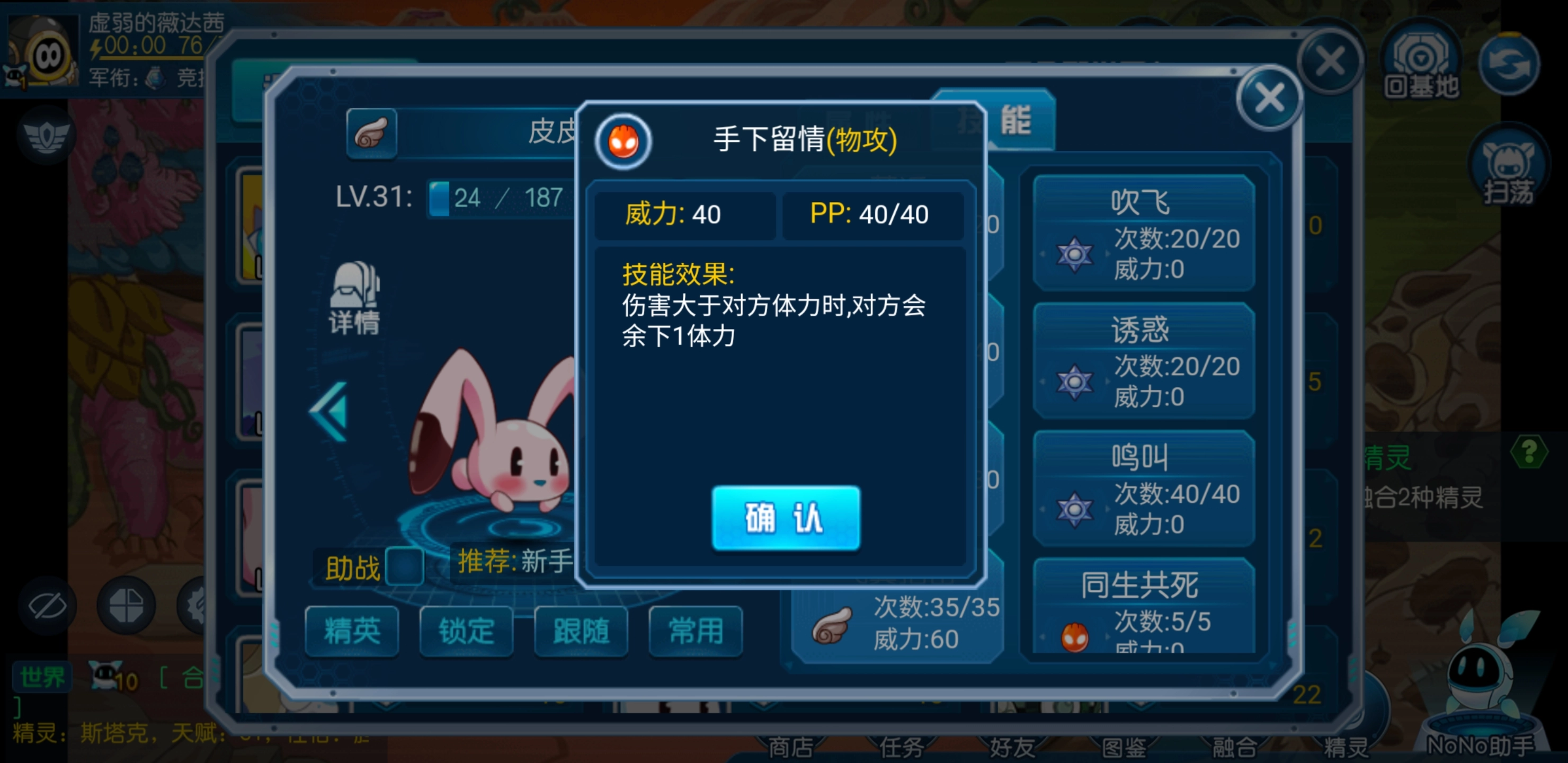 要是玩家精灵等级普遍偏高,把控捕捉时的血量会比较困难,这时小编建议用皮皮来捕捉闪光皮皮。不过玩家得先提升皮皮的等级,让它学会手下留情这个技能,该技能能把目标精灵的血量压到最低,之后玩家就能顺利进行捕捉操作了。