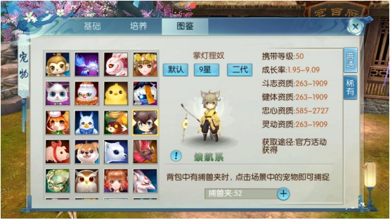 第二个需要注意的是:若要捕捉宠物,背包里必须备有捕兽夹,要是没有的话就无法进行捕捉操作。使用时只需点击宠物系统,它会自动启用捕兽夹,一旦捕捉成功,背包里的捕兽夹数量就会自动减少。
