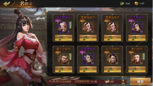 前文我多次提到的名将馆,能够用信物兑换英雄碎片,并且最低都是紫色品质的雄将呢。不过偶尔可能会刷新出完整的英雄,这种情况下就需要用金珠来购买了。