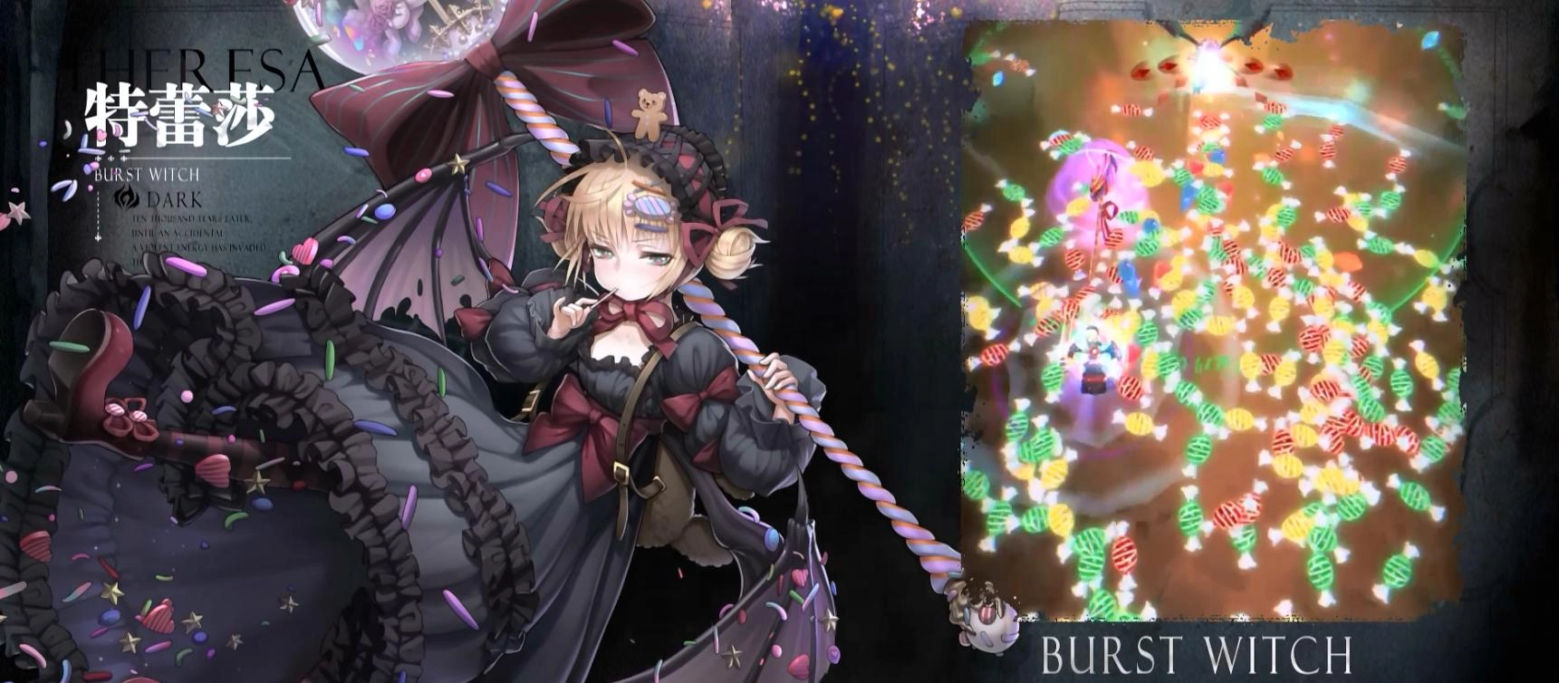 特蕾莎是爆鸣系的强力角色,天赋加成效果颇为可观。她的终极技能主打高贵的暴击,凭借大招“天命难违”释放必杀,能让所有对手都臣服于女皇的指令之下。技能释放全部炮弹攻击时,会随机掉落不同种类的糖果,收集这些糖果后可获得对应的效果:例如红色糖果能增加340点攻击,绿色糖果可提升170点爆伤,且每种糖果的效果都能叠加6层,持续时间为5秒钟。