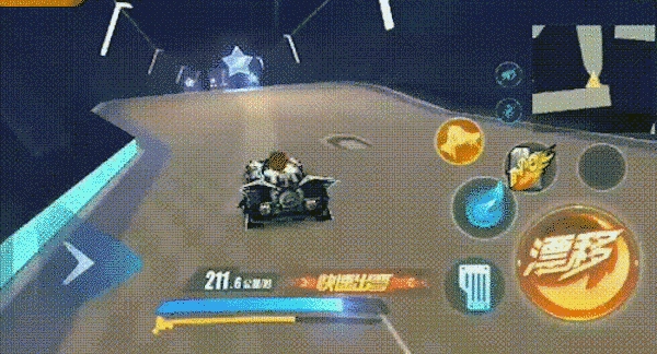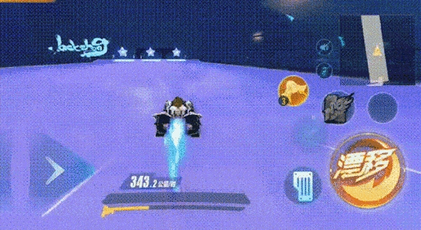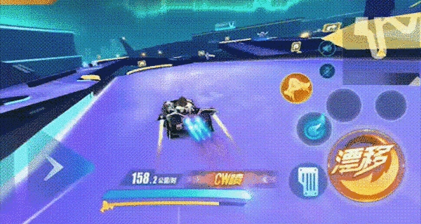 前方的透明赛道是个特殊路段,在这里漂移不会减速。为了防止速度过快,建议在进入该路段前先小漂一下,适当降低车速,这样就能更轻松地漂移通过。不过要注意,快速出弯时如果时机把握不当,不管是太早还是太晚,赛车都可能撞到墙壁,严重的话甚至会导致复位。