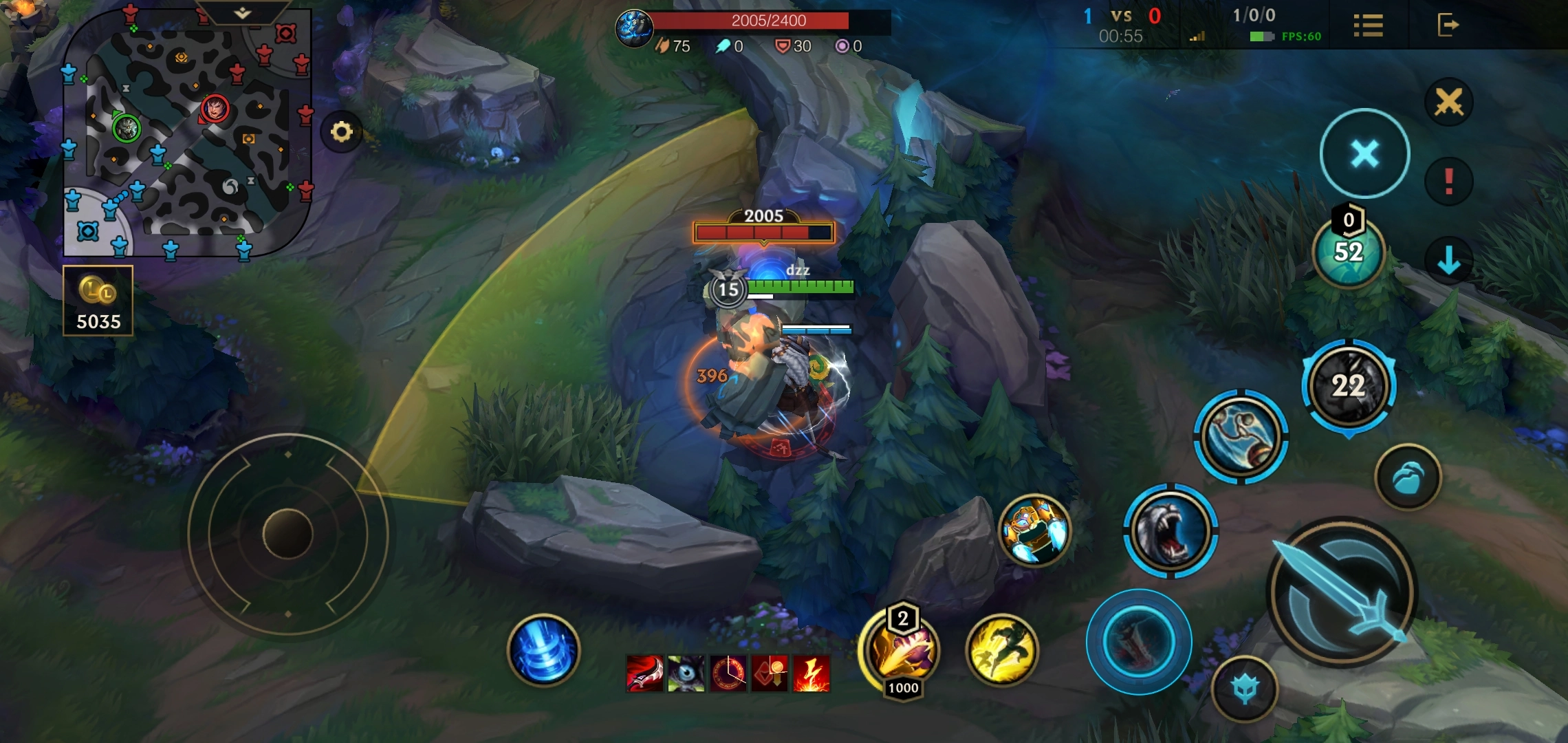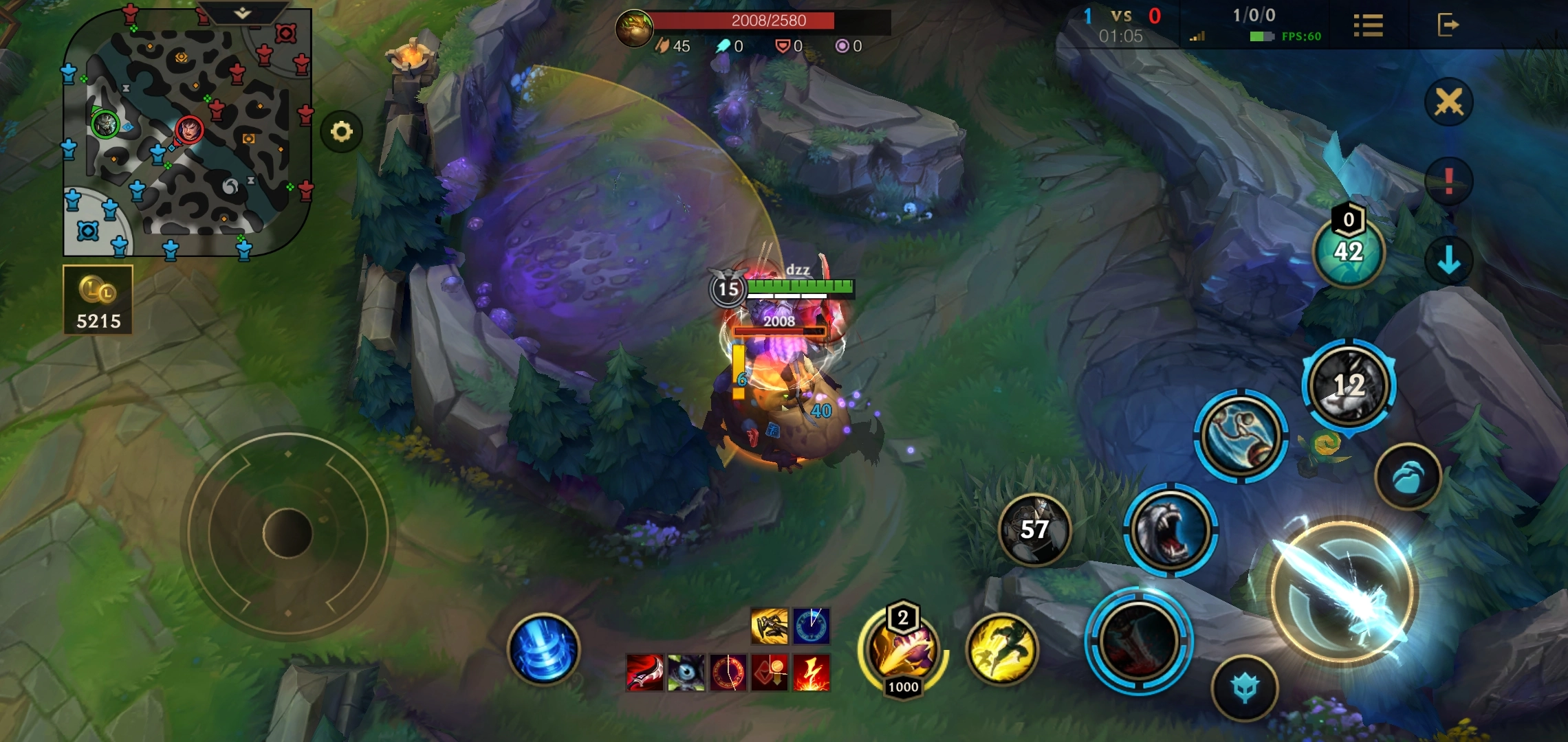然后只需要安稳发育到五级,之后就能频繁借助大招去Gank下路了。