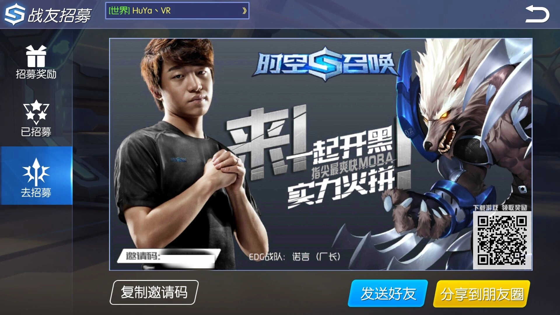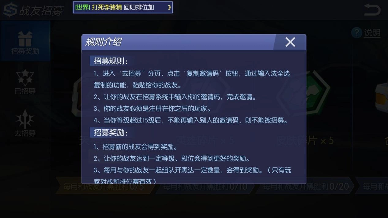 招募的具体操作依托招募码来实现:在游戏主界面打开好友板块,便能找到招募按钮;进入招募界面后,左侧底部标有“去招募”的区域,展示的就是你的专属招募码。该招募码仅限游戏时长比你短、等级不超过15级的玩家使用,他们通过此码可完成被你招募的流程。
