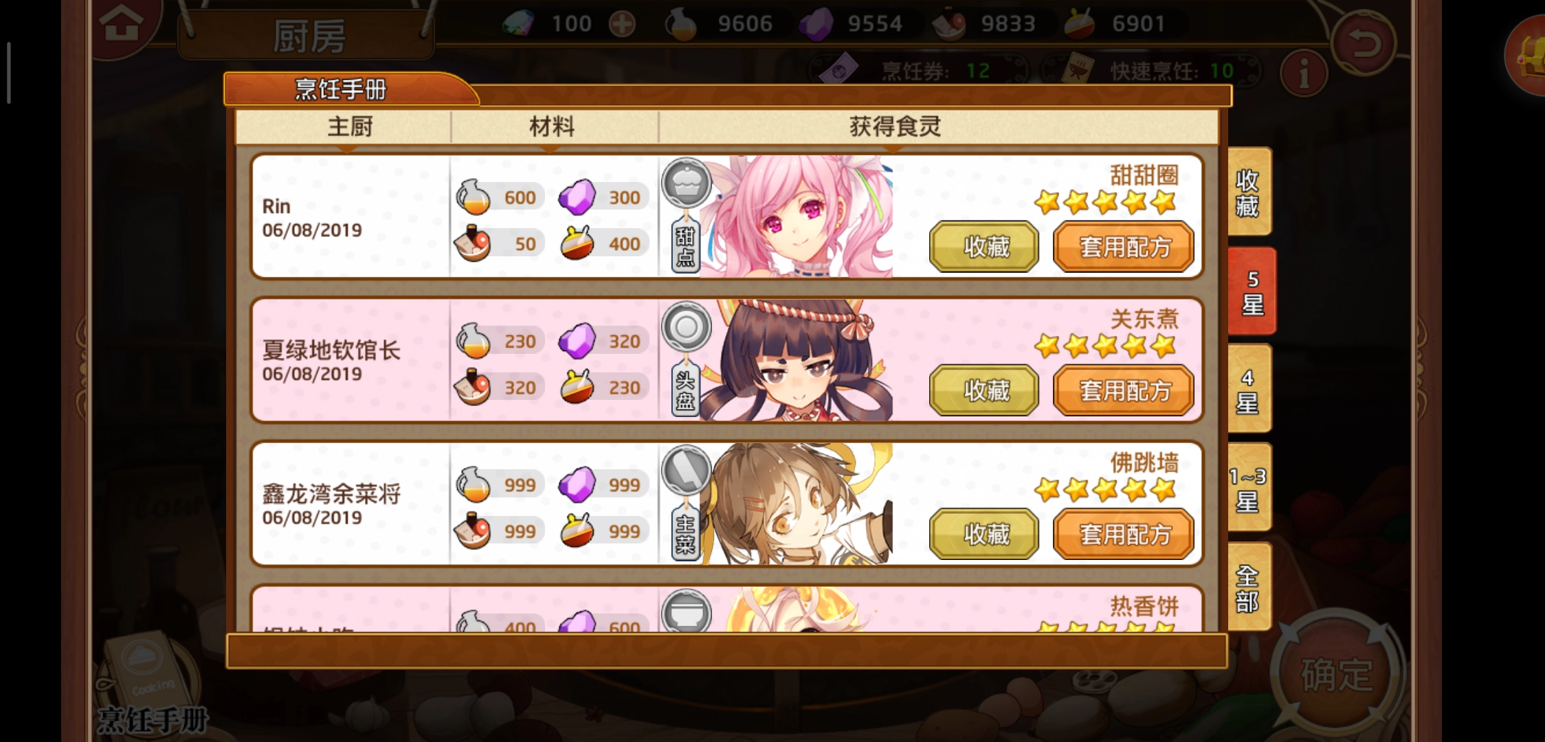 高星级的食灵数量并不多,通常在战斗中不常遇到,它们中的大部分都是通过厨房烹饪的方式获取的。