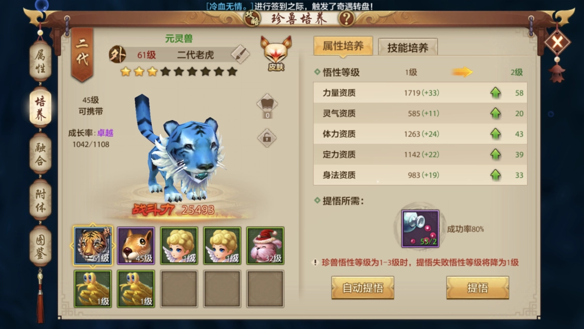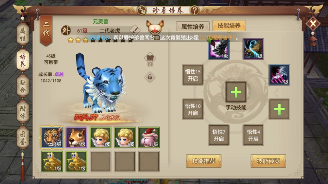 珍兽宝宝没办法通过学习技能来提升悟性,不过能够借助培养来提高它的成长率。