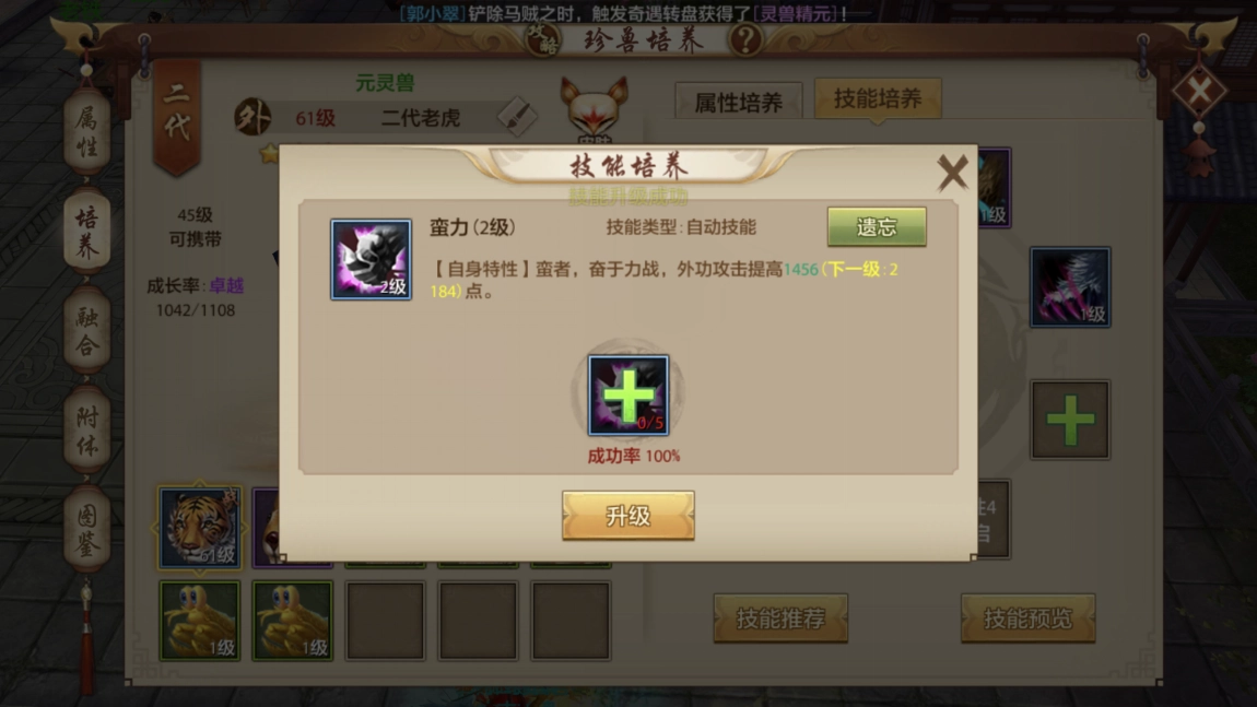 点开珍兽界面了解珍兽的各种信息。
