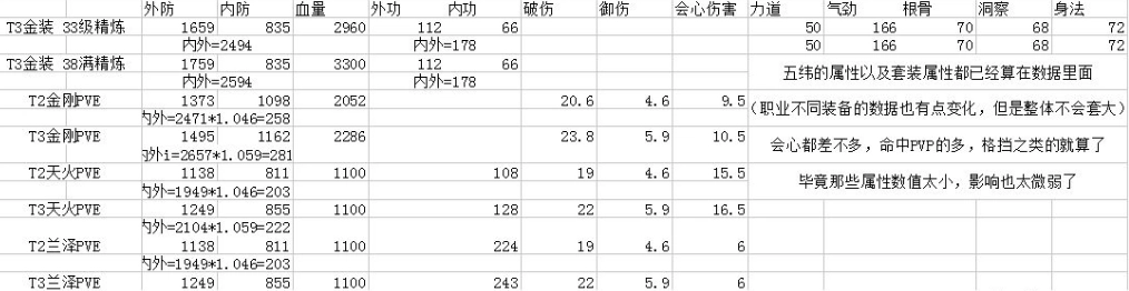 最终这个金刚套,也就是T套,它具备生命值,但相比pvp套装要少不少;其优势在于更为全面,玩家所需的各类属性它都有所涵盖,内外属性的总和也不会低于pvp套装。所以简单来说,其实就是用一定的生命值换取了DPS的输出能力,这样直白的解释相信能让大家更容易理解。