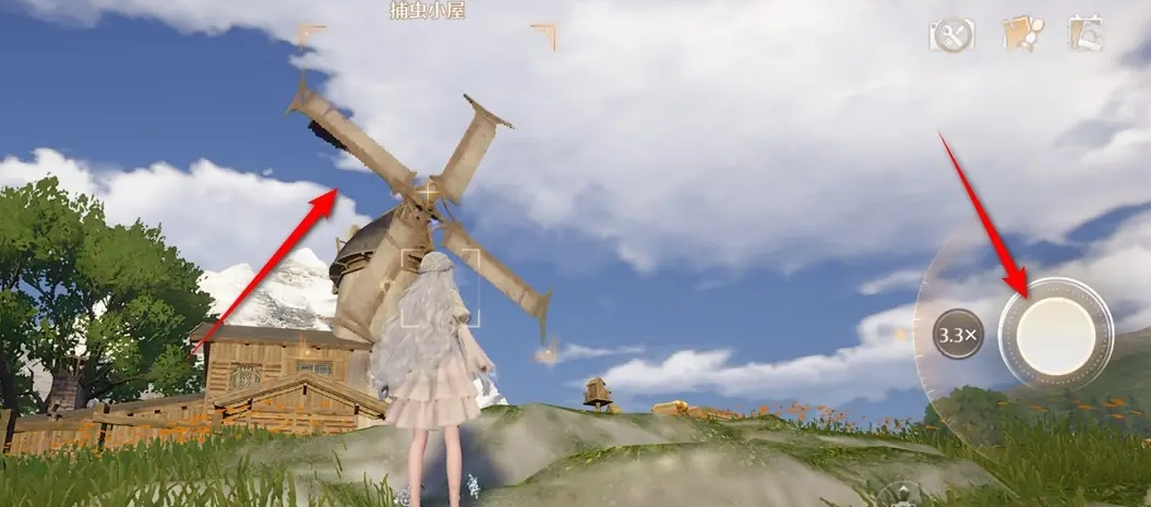 3、当对准并识别出“捕虫小屋”后,点击相机快门进行拍照。