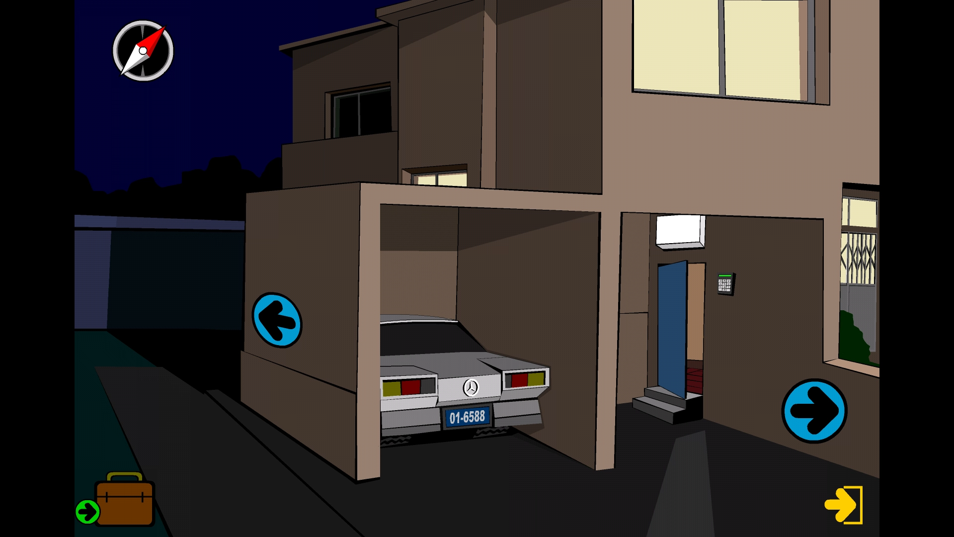 然后沿着原路返回至研究室大门。点击右上角的指南针,即可抵达博士的家。随后我们会发现,博士家的门处于敞开状态,点击那扇蓝色的门,走进去一探究竟。