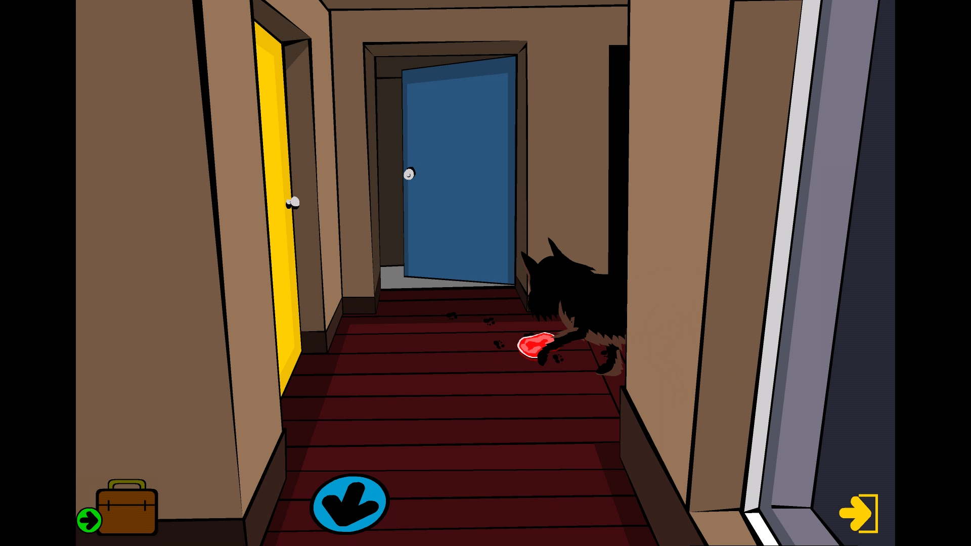 进去之后,发现在门前有一只狼狗正在吃肉。我们得把这只狼狗赶走,所以要用上刚才收集到的东西。