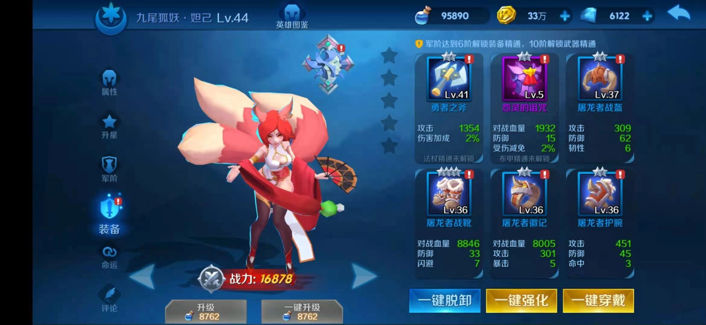 以上便是本次关于塔塔帝国中九尾妖狐(妲己)适宜装备的介绍,搭配这些装备的妲己能展现出极佳效果,内容就到这里啦,希望能对大家在游戏里的发挥有所帮助。